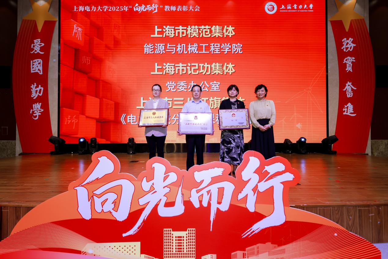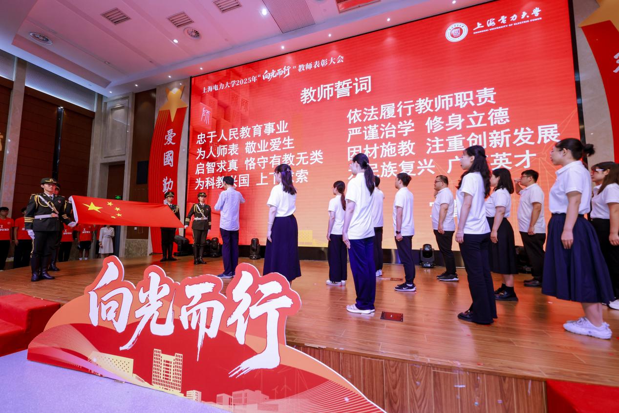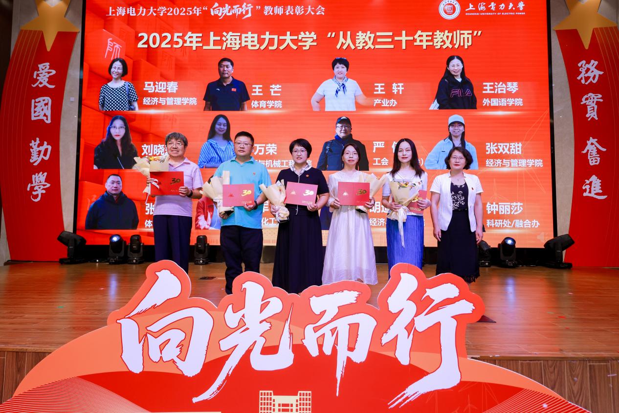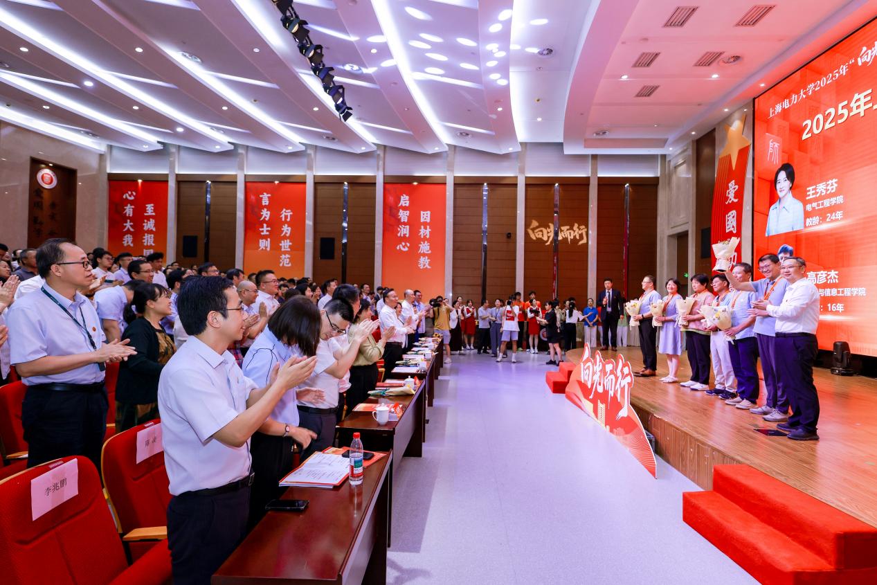 為深入學習貫徹習近平總書記關于教師隊伍建設的重要講話精神,推進實施教育家精神鑄魂強師行動,9月28日下午,上海電力大學2025年“向光而行”教師表彰大會在臨港校區學術樓117報告廳舉行,2024-2025學年在教學、科研、管理等各項工作中取得優異成績的教師集體和個人受到表彰。校黨委書記宋來,校黨委副書記、校長顧春華,黨委副書記、紀委書記張艷林,黨委副書記仰頤,黨委副書記、副校長朱克勇,副校長楊寧等出席本次大會。