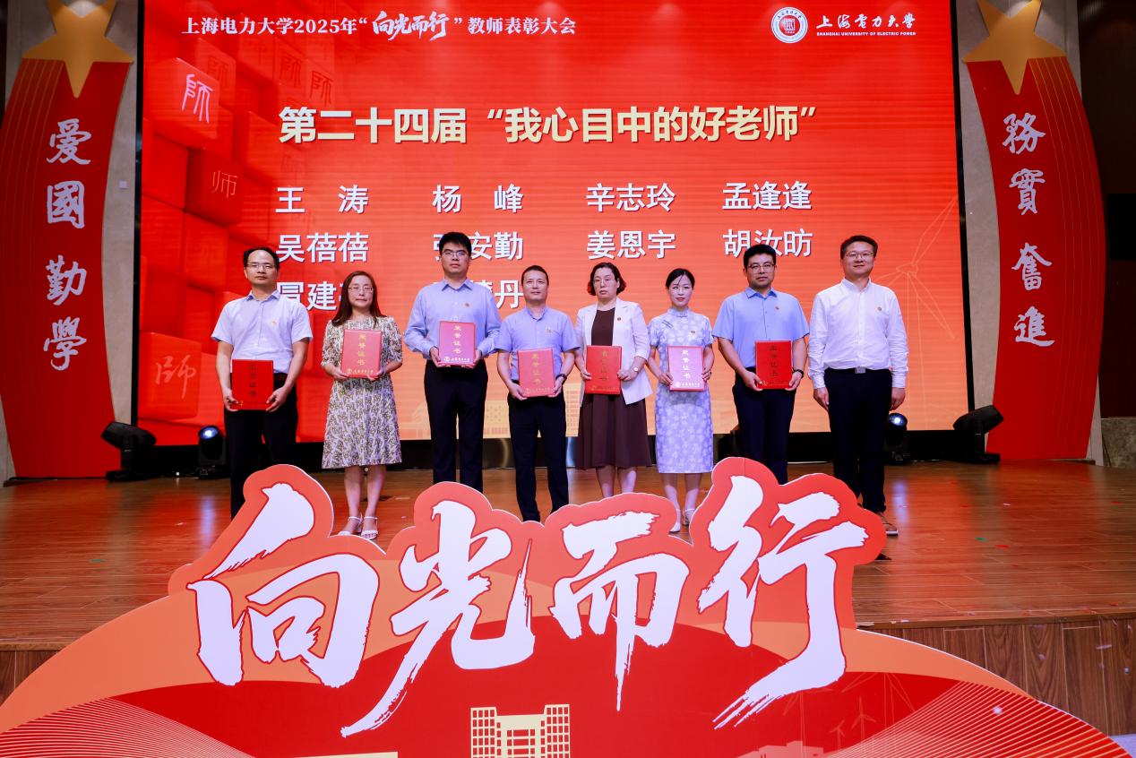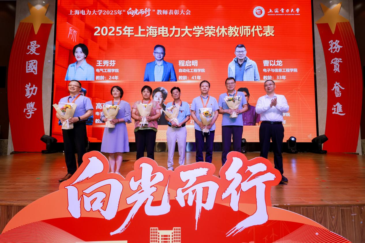 宋來向所有受表彰的集體和個人表示祝賀。他指出,在這滿載收獲、再啟新程的金秋時節,大家歡聚一堂,舉行教師表彰大會,共同見證優秀教師的榮光,共同分享育人路上的喜悅,共同展望高質量發展的未來。他和與會教師分享了四點思考:第一,尊師重教,教師隊伍是大學發展進步的核心基石。習近平總書記指出,教師隊伍是“立教之本、興教之源”,當前我校正在加快建設能源電力優勢突出、行業特色鮮明的一流應用型大學,教師隊伍是最為關鍵的第一資源。第一資源興,則上電興;第一資源強,則上電強。在新征程上,每一名上電教師都是主角,都是我校建設一流應用型大學的參與者、書寫者和見證者,每名教師前進的腳步,都疊加成上電的進步;每名教師創造的成績,都匯聚為學校闊步前行的力量。第二,見賢思齊,優秀教師是學校引以為傲的資本和賴以發展的底氣。強化典型示范是加強教師隊伍建設的精神引領和價值導向。近年來,我校涌現出了一批愛崗敬業、潛心育人、素質優良、成果突出的優秀教師。希望全校教師,特別是今年新加入上電大家庭的青年教師們,以榜樣為鏡,把個人理想融入教育強國建設與學校事業發展,在育人實踐中貢獻智慧力量、實現人生價值。第三,賦能增值,全力營造有利于教師發展的優良環境。讓教師安心從教、熱心從教、舒心從教、靜心從教,是學校教育事業永葆活力的根本。學校黨委和行政將更好地把服務教師、支持教師、發展教師作為重要責任,著力構建緊密的“學術共同體、發展共同體、命運共同體”,全力為教師成長成才成功創造更好條件、搭建更廣平臺。讓上電成為教師安居樂業的家園、成就夢想的沃土。第四,堅守初心,努力做“經師”和“人師”相統一的“大先生”。希望每一位教師積極踐行教育家精神,做到眼里有光、心中有愛、肩上有責、腳下有力,成為有理想信念、有道德情操、有扎實學識、有仁愛之心的“四有”好老師。不忘初心,筑牢立德樹人之魂;潛心治學,提升教書育人之能;錘煉師德,涵養為人師表之范。以赤誠之心、奉獻之心、仁愛之心投身教育,培養更多具有“情懷深、實踐強、善創新、能跨界”特質的高水平應用型人才。