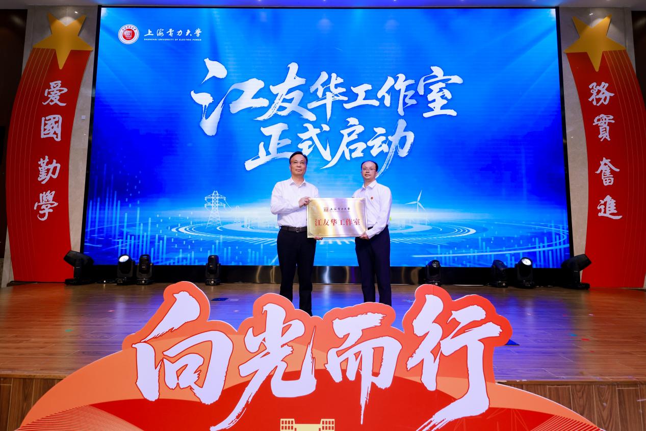 顧春華為全國優秀教師江友華老師領銜的“江友華工作室”授牌,這將是江老師的教育智慧和育人經驗輻射分享的新起點,更是將“全國優秀教師”的精神傳承至上電教師心中的新征程。