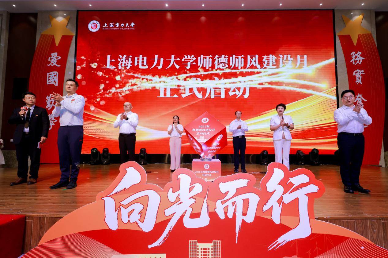 會上,江友華、孫玉芹、何平、高波、史強、高慶偉六位一線教師代表用教育家精神的六個方面拼圖為引,共同“電”亮“師德光立方”,這束光芒象征著上電教師對教育家精神的傳承和踐行,正式啟動上海電力大學2025年師德師風建設月。