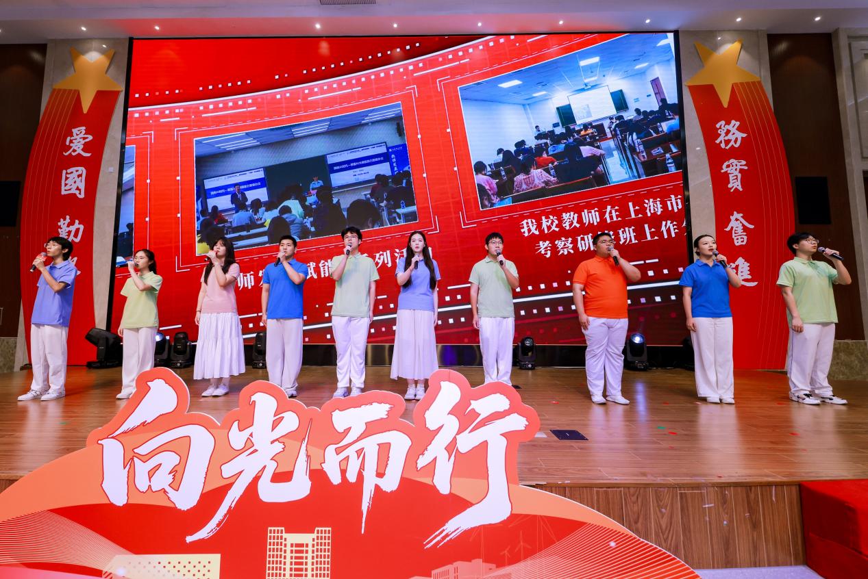 教育家精神是扎根教育的堅守,是點亮未來的執著,藏在“為黨育人”的誓言里,融在“為國育才”的行動中。《師道長歌》詩朗誦點燃全場,鏗鏘話語詮釋教育家精神內涵,真情實感傳遞教育者育人初心,引發在場教職工強烈共鳴。