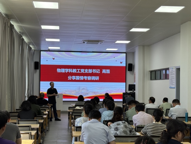 物理學科教工黨支部書記高湉老師與數學系骨干教師吳泉軍老師,聚焦教育者如何胸懷“國之大者”,分享了暑期深入一線的國情考察見聞。他們深刻闡述了如何將國家發展的宏大敘事、社會現實的生動案例,有效轉化為課堂教學的鮮活素材與科研攻關的現實導向。他們的分享體現了學院教師自覺將個人學術追求融入國家發展大局,將知識傳授與價值引領深度融合,致力于培養具有家國情懷與實踐能力的時代新人。