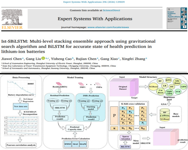 在《Expert Systems with Applications》上發表的論文“Ist-SBiLSTM: Multi-level stacking ensemble approach using gravitational search algorithm and BiLSTM for accurate state of health prediction in lithium-ion batteries”(DOI: 10.1016/j.eswa.2025.129009),針對鋰離子電池容量再生現象及健康狀態預測問題,提出了一種基于自適應級聯優化的多層混合預測方法 Ist-SBiLSTM,顯著提高了預測準確性。
