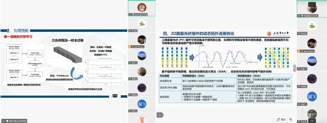 隨后,三位教師代表分享前沿研究成果,展現團隊在低碳能源、AI+能源領域的技術突破。針對傳統光伏組件適配復雜曲面難的問題,蔡靖雍副教授建立了多尺度多物理場模型,揭示了曲面光伏輻照分布規律,優化了組件串接結構,開發的“曲面光伏-通風幕墻-熱泵”復合系統,為建筑光伏一體化、應急能源場景提供新方案。錢凡悅博士后聚焦需求側能源系統精細化調控,引入遷移學習技術,解決分布式能源系統數據稀缺、個性化差異大的痛點,通過優化算法與模型,大幅提升負荷預測精度與故障診斷效率。針對電力巡檢安全風險高、效率低的問題,冒建亮副教授研發了變電站雙臂移動機器人與輸電線路爬行機器人,集成視覺定位、強化學習等技術,攻克復雜操作難題,已在南方電網示范應用,并亮相2025年世界人工智能大會,為“機器人+能源”戰略落地提供技術支撐。