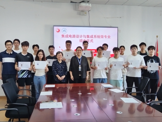 隨后,學(xué)院領(lǐng)導(dǎo)為首批微專業(yè)學(xué)生頒發(fā)集成電路微專業(yè)結(jié)業(yè)證書。交流環(huán)節(jié)中,韓雅欣同學(xué)表示,通過(guò)集成電路微專業(yè)的學(xué)習(xí),為自己的專業(yè)基礎(chǔ)打開了一扇“芯”門,后續(xù)將在該領(lǐng)域繼續(xù)努力,發(fā)光發(fā)熱。