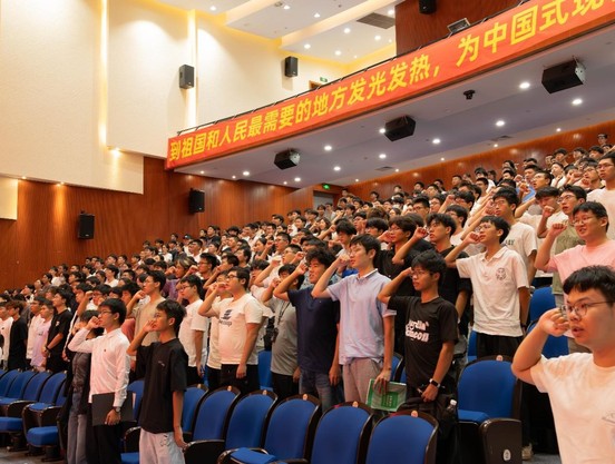 最后,研究生新生張博楠帶領(lǐng)全體新生進(jìn)行入學(xué)宣誓,鄭重承諾將銘記校訓(xùn),踐行院訓(xùn),傳承時代精神,勇?lián)嗄晔姑褌€人理想追求融入黨和國家事業(yè)之中,以青春之我、奮斗之我,為電力強(qiáng)國夢奮斗終身!