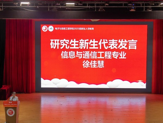 2025級信息與通信工程專業(yè)碩士生徐佳慧同學(xué)作為研究生新生代表發(fā)言。她分享了自己從本科畢業(yè)、踏入職場再到重返校園的獨(dú)特心路歷程,并坦言工作經(jīng)歷讓她深刻認(rèn)識到“知識應(yīng)為需求服務(wù)”。站在新的人生起點(diǎn),她圍繞“厚植家國情懷,成長為堪當(dāng)大任的拔尖創(chuàng)新人才”這一主題,號召全體新生要將個人研究方向與國家戰(zhàn)略需求緊密結(jié)合,在潛心科研、勇于創(chuàng)新的過程中,踐行校訓(xùn)精神,為上電發(fā)展譜寫新的輝煌篇章。