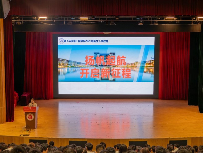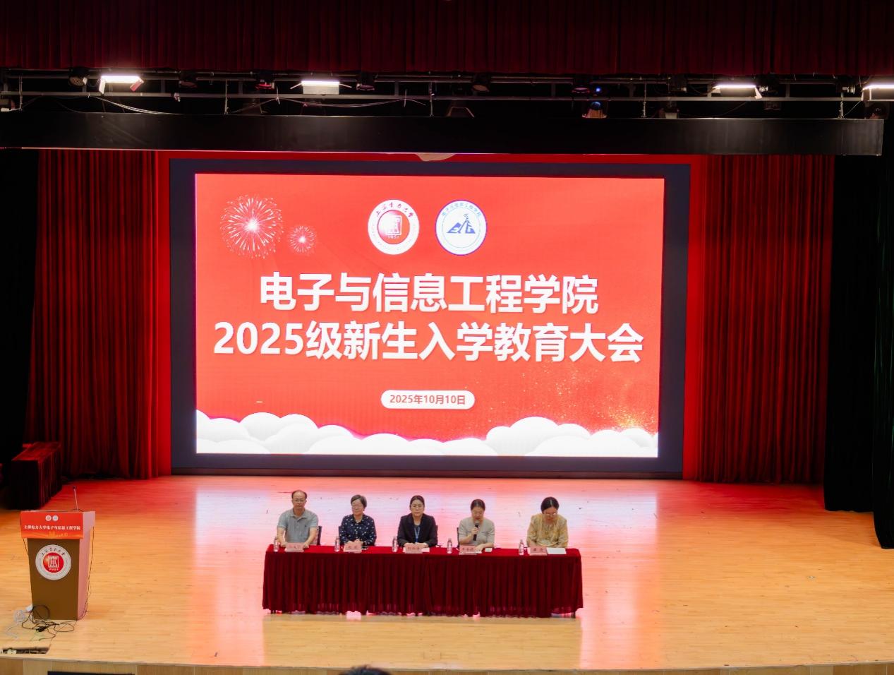 為更好的引導(dǎo)2025級新生盡快適應(yīng)大學(xué)環(huán)境,扣好大學(xué)生涯的“第一??圩印?,電子與信息工程學(xué)院于10月10日下午在大學(xué)生活動中心演藝廳召開2025級新生入學(xué)教育大會。學(xué)院黨委書記何西培、黨委副書記周冬梅、副院長趙琰、副院長薛亮,及學(xué)院教師代表、新生輔導(dǎo)員、全體2025級本科生和研究生新生參加大會。會議由周冬梅主持。