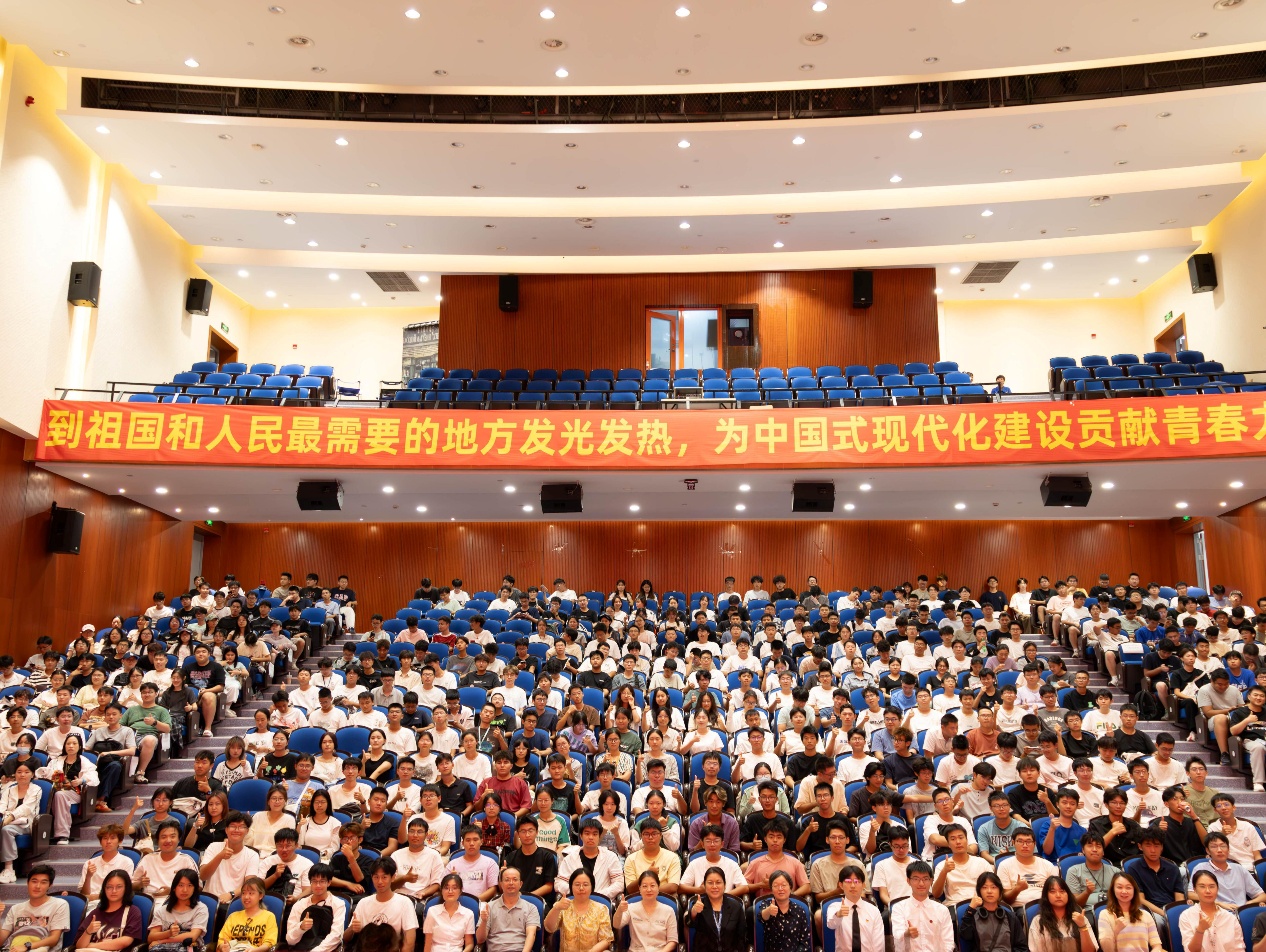 趙琰向新生們介紹了教學(xué)管理相關(guān)工作,從專業(yè)設(shè)置、培養(yǎng)體系、選課考試、學(xué)業(yè)評價等方面進(jìn)行詳細(xì)介紹,明確了課程考核的方式與成績評定標(biāo)準(zhǔn),并對同學(xué)們關(guān)心的轉(zhuǎn)專業(yè)與推免研究生政策進(jìn)行說明。她還特別強(qiáng)調(diào)考風(fēng)考紀(jì)的嚴(yán)肅性,提醒同學(xué)們務(wù)必堅守誠信底線。最后,趙琰表示大學(xué)生活中主動學(xué)習(xí)和自主規(guī)劃至關(guān)重要,希望同學(xué)科學(xué)規(guī)劃學(xué)業(yè),為未來四年的成長之路奠定堅實(shí)基礎(chǔ)。