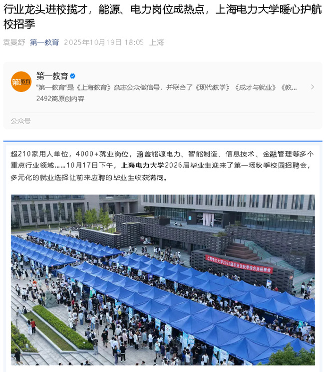 《第一教育》行業(yè)龍頭進(jìn)校攬才,能源、電力崗位成熱點(diǎn),上海電力大學(xué)暖心護(hù)航校招季