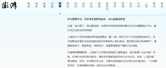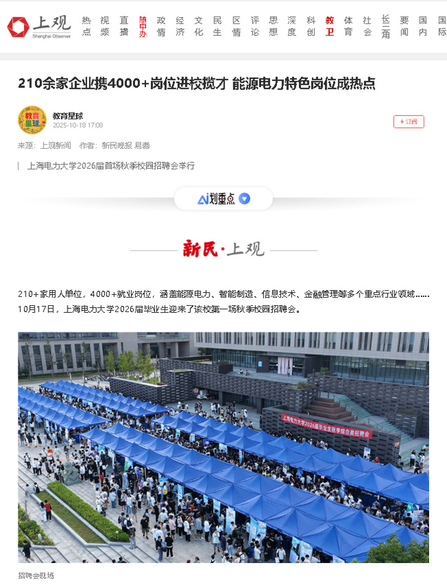 《上觀新聞》210余家企業(yè)攜4000+崗位進(jìn)校攬才 能源電力特色崗位成熱點(diǎn)