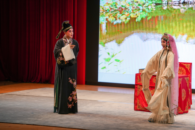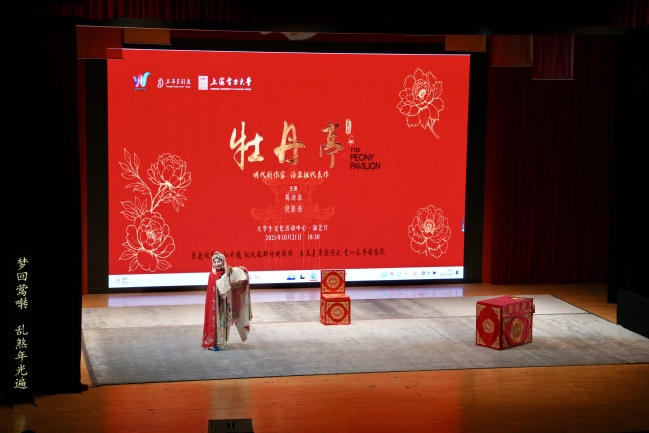 10月21日晚,臨港校區大學生文化活動中心演藝廳內,婉轉昆腔漫過座席,水袖剪影漸次浮現,由校黨委宣傳部、學生工作部(學生處)聯合主辦的“高雅藝術進校園”——昆劇《牡丹亭》專場在這里精彩上演。上海昆劇團的青年演員們以精湛的表演藝術,將中國古典戲曲的獨特魅力帶入校園,為師生奉上一場跨越時空的非遺盛宴。本次演出吸引了近500名師生觀看。