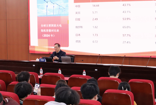 活動(dòng)最后,“研?電”論壇001期正式開講。特邀嘉賓梁建勇以《電力事業(yè)輝煌成就,民族復(fù)興動(dòng)能澎湃》為題帶來精彩講座。梁建勇現(xiàn)任中國信息協(xié)會(huì)能源委員會(huì)首席專家、多所高校特聘教授,長期深耕能源電力領(lǐng)域,擁有深厚的理論積淀與豐富的實(shí)踐經(jīng)驗(yàn)。講座中,他從電力產(chǎn)業(yè)的戰(zhàn)略定位出發(fā),深刻闡釋了電力事業(yè)作為國民經(jīng)濟(jì)基礎(chǔ)與支柱產(chǎn)業(yè),既是保障民生福祉的民生工程,更是賦能民族復(fù)興的核心動(dòng)能。他通過鮮活案例回望電力事業(yè)的輝煌歷程,闡述了我國電力事業(yè)實(shí)現(xiàn)從跟跑到全面領(lǐng)跑的歷史性蛻變,同時(shí)面臨五大結(jié)構(gòu)性挑戰(zhàn)亟待破解。對(duì)此,他提出需通過靶向?qū)Σ吲c國際經(jīng)驗(yàn)借鑒破解發(fā)展難題,明確2030—2035年從階段建成新型電力系統(tǒng)到全面引領(lǐng)全球能源轉(zhuǎn)型的發(fā)展路徑。梁建勇勉勵(lì)上電學(xué)子更應(yīng)錨定電力強(qiáng)國目標(biāo)勇?lián)姑瑸樾袠I(yè)高質(zhì)量發(fā)展注入青春力量。從特高壓工程的能源輸送突破到綠色能源的廣泛應(yīng)用,他讓在場師生深刻感受能源發(fā)展的偉大創(chuàng)舉與科學(xué)精神的時(shí)代價(jià)值。