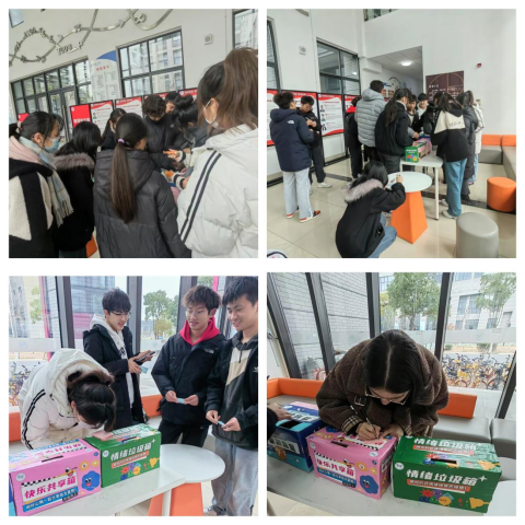 為向學生提供一個釋放情緒、舒緩壓力的平臺,學院開展了“情緒交換站”活動?;顒右潦?,學生們紛紛拿起紙筆,記錄近期的喜悅時刻,并將其投入“快樂箱”中。同時,也有不少學生選擇直面內心的“陰霾”,將那些困擾自己的負面情緒傾訴于紙上,并投入“情緒垃圾箱”。一位參與活動的學生在投放壞情緒紙條時感慨地說:“這些負面情緒像石頭一樣壓在心底,今天寫下來扔掉,感覺心里輕松了許多,仿佛真的能跟‘壞情緒’說再見了?!?/p>