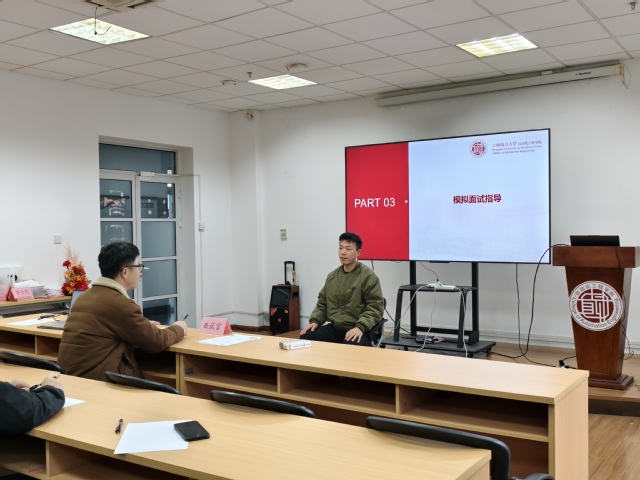 隨后,李果從企業(yè)架構(gòu)、企業(yè)文化、發(fā)展歷程等角度全面介紹上海申通地鐵集團(tuán)有限公司和維保公司的基本情況。他強(qiáng)調(diào),上海地鐵作為功能保障類企業(yè)品牌,始終以完成國家戰(zhàn)略和重點(diǎn)任務(wù)、保障城市高效運(yùn)行為主要目標(biāo)。并通過企業(yè)宣傳視頻,讓同學(xué)們們對(duì)上海地鐵有了更全面的認(rèn)識(shí)。在模擬面試指導(dǎo)環(huán)節(jié),面試官從語言表達(dá)、職業(yè)禮儀和簡歷修改等方面為22級(jí)學(xué)生提供了詳盡的指導(dǎo)。 、