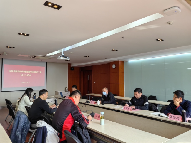 2025年1月7日上午,體育學院黨總支在楊浦校區行政中心9樓五號會議室召開2024年度處級黨員領導干部民主生活會。副校長楊寧、民主生活會督導組成員、體育學院黨政班子全體成員參加會議。會議由學院黨總支書記金斐主持。