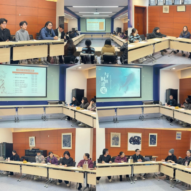 隨后,在研討交流環(huán)節(jié)中,校大學生藝術團指導教師章贇、浦育川以及大學生話劇團團長張雪瀾同學分別以《與時俱進·我校藝術團建設的幾點思考》《如何提高學生參賽積極性打造藝術精品》《加強團隊凝聚力——對大學生話劇團建設的思考》為主題,就如何打造“AI+藝術”創(chuàng)作模式;強化大藝術團發(fā)展理念,培養(yǎng)“大美育”格局;破圈資源資金不足壁壘,集中打造上電特色精品力作;如何通過對生活極致的觀察,用獨特的視角和創(chuàng)意轉(zhuǎn)化為引人入勝的藝術作品以及增強藝術團凝聚力等內(nèi)容進行主題發(fā)言及交流分享。期間,圍繞2025年工作展望,參會師生就各個藝術分團目前存在的困難以及如何增進各藝術分團之間的聯(lián)系及融合展開熱烈的討論,并積極建言獻策,對藝術團后續(xù)發(fā)展提出更具針對性的意見建議。