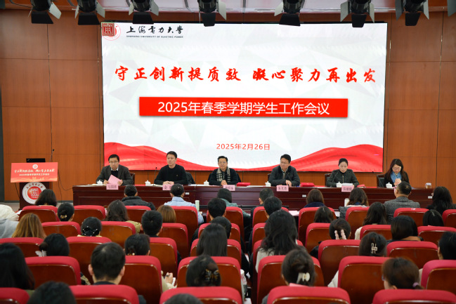 守正創新提質效,凝心聚力再出發。為進一步推動學生工作縱深發展,統一思想,明確目標,凝聚力量,提振精神,確保全年學生工作開好局、起好步,2月26日,我校在臨港校區學術樓103報告廳召開2025年春季學期學生工作會議。校黨委書記李明福,校黨委副書記、副校長朱克勇出席會議。學生工作部(處)、研究生工作部、團委、武裝部等相關職能部門負責人、各二級學院黨委副書記、全體輔導員及學工隊伍相關人員參加大會。會議由學生工作部(處)部長陳姍姍主持。