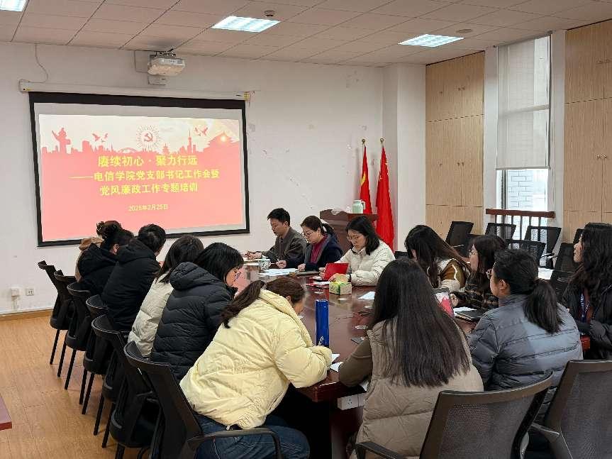 為進(jìn)一步強(qiáng)化黨建引領(lǐng),扎實(shí)推進(jìn)新學(xué)期各項(xiàng)重點(diǎn)任務(wù),2月25日,電信學(xué)院黨委在電計(jì)樓B402會(huì)議室召開新學(xué)期第一次黨支部書記工作會(huì)暨黨風(fēng)廉政工作專題培訓(xùn)。學(xué)院黨委書記何西培,黨委副書記周冬梅,黨委紀(jì)檢委員,各黨支部書記、黨支部紀(jì)檢委員,黨風(fēng)廉政監(jiān)督員、專職組織員參加會(huì)議。會(huì)議由學(xué)院專職組織員修紹梅主持。