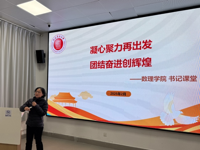 為貫徹落實習近平總書記在全國教育大會上的重要講話精神,實施教育家精神鑄魂強師行動,加強師德師風建設,提高教師培養培訓質量,培養造就新時代高水平教師隊伍,2月25日,數理學院開展教師政治理論集中學習,學院黨委書記徐廣新以“凝心聚力再出發,團結奮進創輝煌”為題作“書記課堂”。學院全體教職工參加。