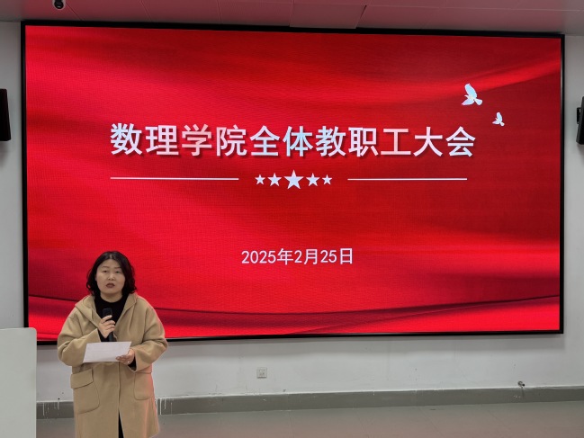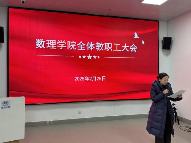 新元肇啟,萬(wàn)象更新。為確保新學(xué)期學(xué)院各項(xiàng)工作穩(wěn)步推進(jìn),數(shù)理學(xué)院精心謀劃,扎實(shí)做好開(kāi)學(xué)及開(kāi)學(xué)后相關(guān)工作,2月25日下午,學(xué)院召開(kāi)全體教職工大會(huì),對(duì)新學(xué)期教學(xué)、科研、學(xué)生工作等學(xué)院各項(xiàng)工作進(jìn)行部署安排。學(xué)院班子成員及全體教職工參加會(huì)議,會(huì)議由學(xué)院黨委書(shū)記徐廣新主持。