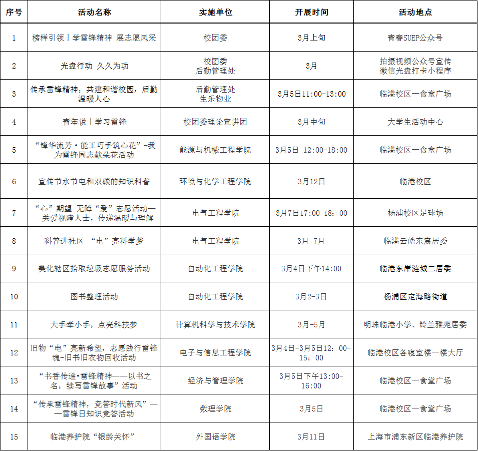 2. 校院兩級團委按照計劃開展各類學雷鋒志愿者服務活動,活動內容如下:
