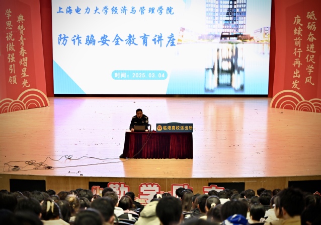 為增強師生的安全防范意識,筑牢校園安全防線,3月3日,經濟與管理學院在大學生活動中心舉辦防詐騙安全教育專題講座。臨港高校派出所副所長張華、學院黨委副書記孟延新、保衛處王旭以及2023級、2024級輔導員出席,學院2023級、2024級全體學生參與,講座由輔導員阿布都如蘇力·麥麥提明主持。