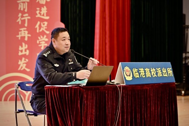王旭介紹目前學校反詐情況,呼吁全體同學將所學信息內化于心、外化于行,共同營造安全和諧的校園環境。