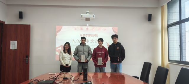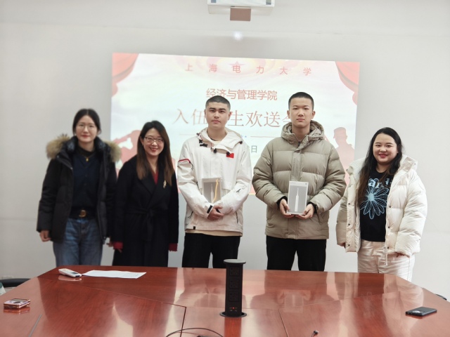 會議期間,學院領導為入伍學生頒發了紀念品,并合影留念。