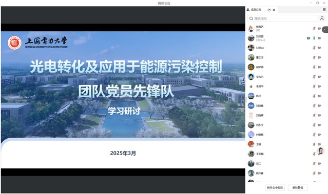 此次學習研討會為團隊明確了發展方向,增強了成員信心。未來,光電轉化及應用于能源污染控制創新團隊將繼續堅持黨建引領,積極推進“有組織科研”,開展跨學科協同創新,攻克關鍵技術難題,持續推進國家級重大項目、重點基金等謀劃和申報,爭取標志性高水平成果,為學校具有能源電力特色的學科建設和國家科技自立自強再立新功。