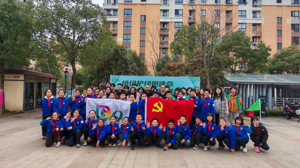 活動(dòng)當(dāng)日,學(xué)院志愿者身著統(tǒng)一綠色馬甲,活躍在活動(dòng)現(xiàn)場(chǎng)。大學(xué)生們與社區(qū)居民、小學(xué)生分組協(xié)作,共同種下20余棵適宜臨港地區(qū)生長(zhǎng)的桂花、山茶花等樹苗。在種植過程中,志愿者們憑借專業(yè)知識(shí),向小學(xué)生詳細(xì)講解植樹要點(diǎn)及生態(tài)環(huán)保意義,并將專業(yè)知識(shí)轉(zhuǎn)化為通俗易懂、居民可操作的環(huán)保方案,讓環(huán)保理念深入人心。種植結(jié)束后,同學(xué)們懸掛精心制作的“成長(zhǎng)紀(jì)念牌”,見證青少年的綠色承諾,也為社區(qū)增添一片新綠,打造出“社區(qū)共建林”這一綠色空間,促進(jìn)社區(qū)生態(tài)環(huán)境的改善。
