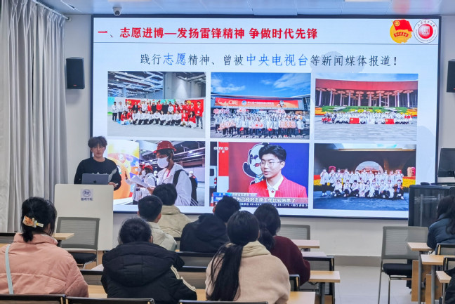 校團委兼職副書記王曉勐結合兩次進博會志愿服務經歷,以及學院學子參與社會實踐案例,勉勵學生骨干踐行“向上”精神,強調青年志愿者工作是歷史賦予的使命,既要懷抱夢想,更要腳踏實地,在奉獻中書寫青春華章。鮮活事跡讓同學們深刻認識到新時代青年應當傳承和發揚雷鋒精神,敢想敢為、善作善成。
