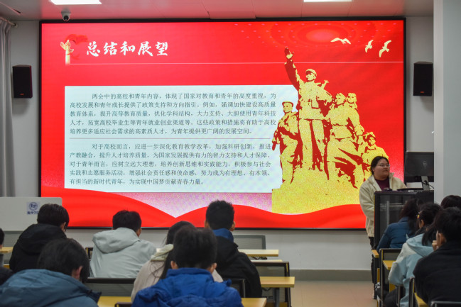 數理學院學生會執行主席唐裕琳帶領全體成員共同學習《2025年國務院政府工作報告》,聚焦新能源、高等教育改革等國家戰略,結合自身實際制定成長坐標,將個人規劃與國家發展緊密結合。唐裕琳表示,我們應當自覺將個人發展規劃與國家戰略緊密結合,以腳踏實地的態度,立足本職崗位,勇于擔當實干。