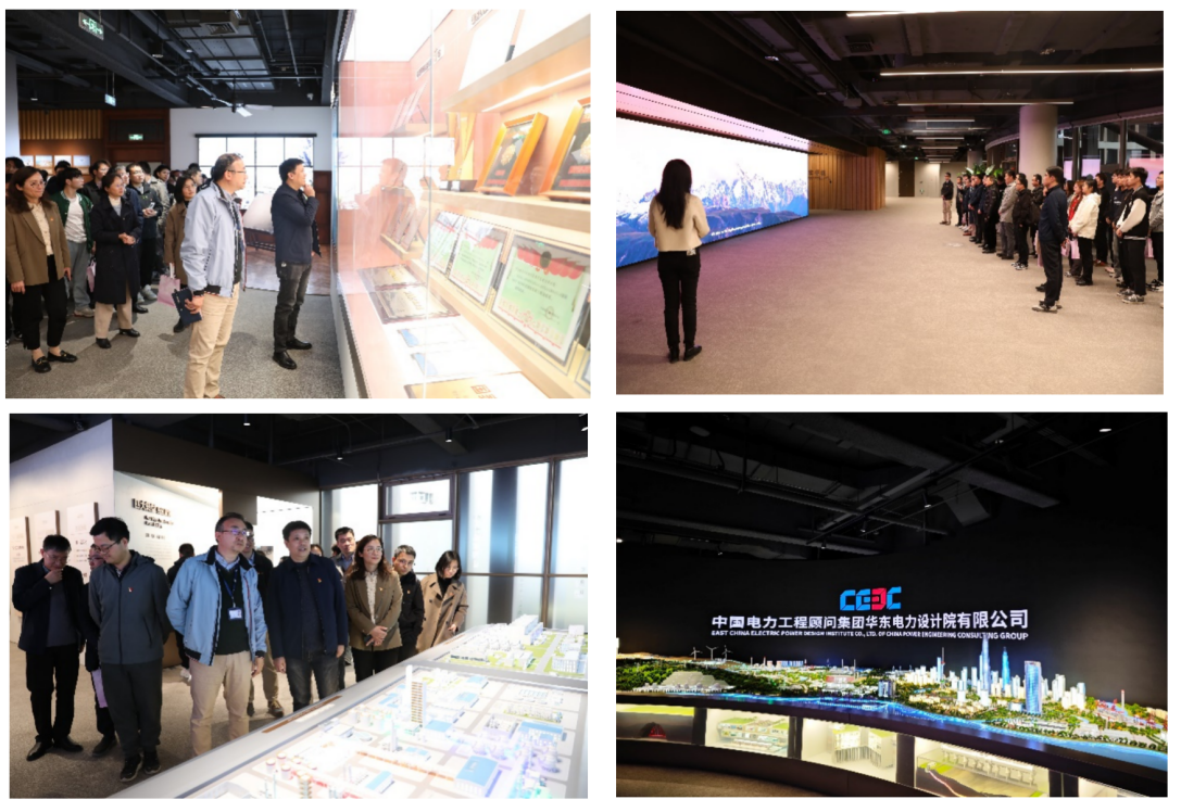 會后,學院一行參觀華東院品牌體驗館。通過沉浸式沙盤演示、三維數字化模型交互等展示形式,沉浸式了解華東院在特高壓輸電、海上風電等領域的標志性工程成果。