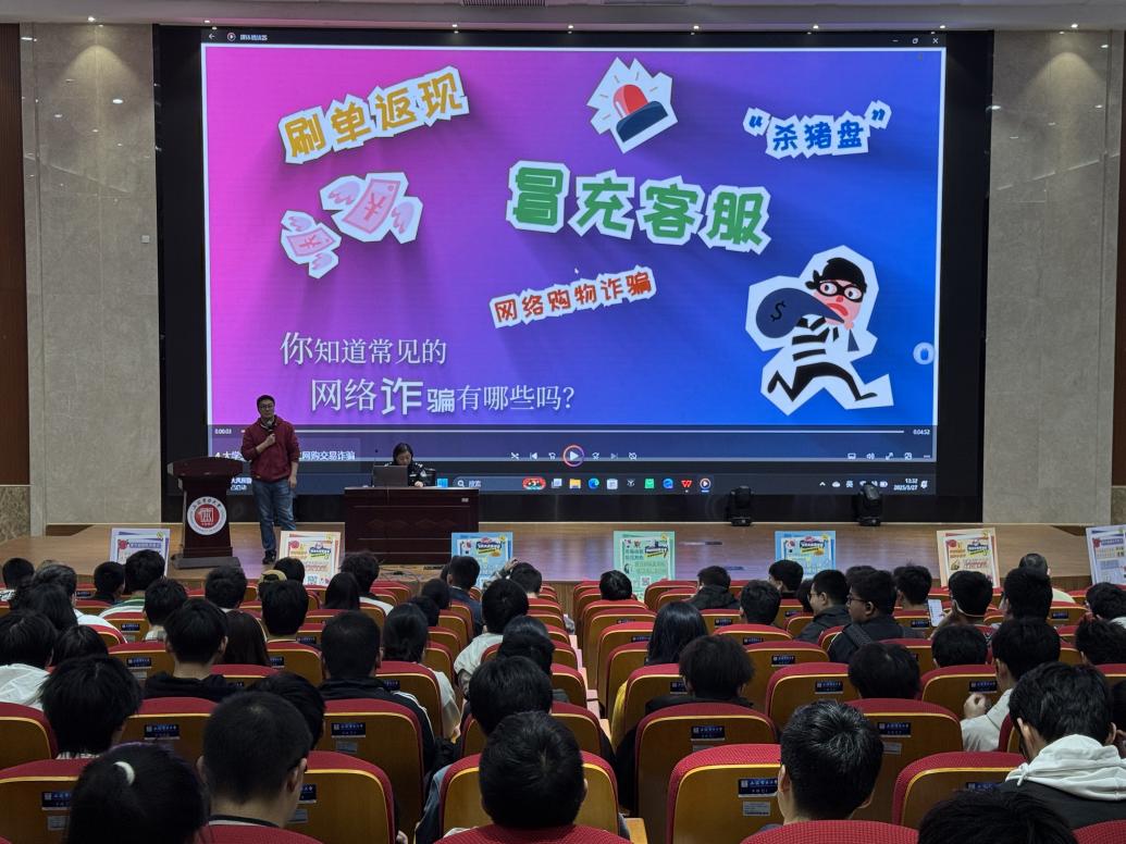講座中,朱紅警官結合高校真實案例,深入剖析“刷單詐騙”“冒充客服”“網(wǎng)絡交友詐騙”等常見詐騙手段,詳細講解詐騙分子的作案手法和防范要點。她特別提醒同學們,未知鏈接不點擊、陌生來電不輕信、個人信息不透露、轉賬匯款多核實,牢記‘三不一多’原則。現(xiàn)場還通過互動問答等形式,幫助同學們掌握識別和應對詐騙的技巧。