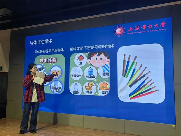 第二站就是上海電力大學(xué)楊浦校區(qū),在佇立于學(xué)校廣場的風(fēng)電、光伏設(shè)備前,大家了解新能源發(fā)電的原理、特點(diǎn)和優(yōu)勢。隨后,學(xué)校電氣工程學(xué)院的大學(xué)生志愿者哥哥姐姐帶來了一場電力知識(shí)微講座,并通過妙趣橫生的科普實(shí)驗(yàn)和有獎(jiǎng)競答,從電力與日常生活的關(guān)系入手,讓同學(xué)們在父母的引導(dǎo)和志愿者的示范下,進(jìn)一步拓展激發(fā)對科學(xué)的興趣,拓寬觀察思考的視野。